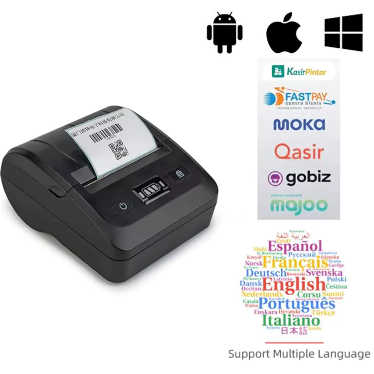 Bu printer Bluetooth və USB bağlantılarını dəstəkləyir və bazardakı çap proqramlarının 90%-i ilə uyğun gəlir. Sadəcə olaraq mobil proqramlar mağazanızdan müvafiq proqramı endirin və çapa başlamaq üçün Bluetooth vasitəsilə qoşulun.