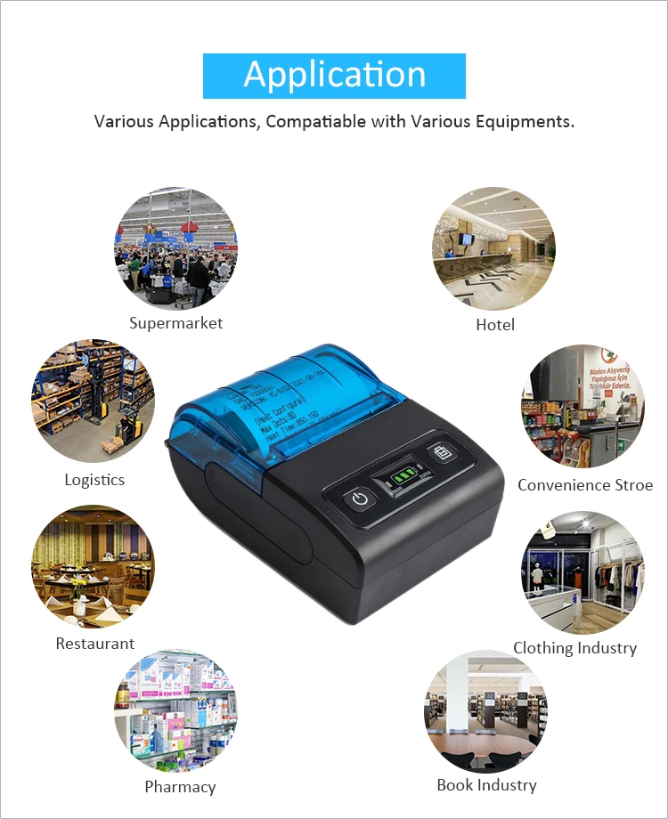 Mini portativ termal printerlər bazarda, xüsusən pərakəndə satış, iaşə, təcili çatdırılma və digər xidmət sahələrində böyük tələbat var. Məsələn, bu tip printer tacirlərə və xidmət təminatçılarına rahat və səmərəli yoxlama həlli təklif edir. Mürəkkəb simli bağlantılara ehtiyac olmadan, Bluetooth texnologiyası smartfonlar, planşetlər və ya mobil cihazlarla tez və asan birləşməyə imkan verir və ödəniş prosesini daha sürətli və daha rahat edir. Portativ və yüngül dizaynı ilə mobil satış nöqtələri və ya xidmət ssenariləri üçün uyğundur.